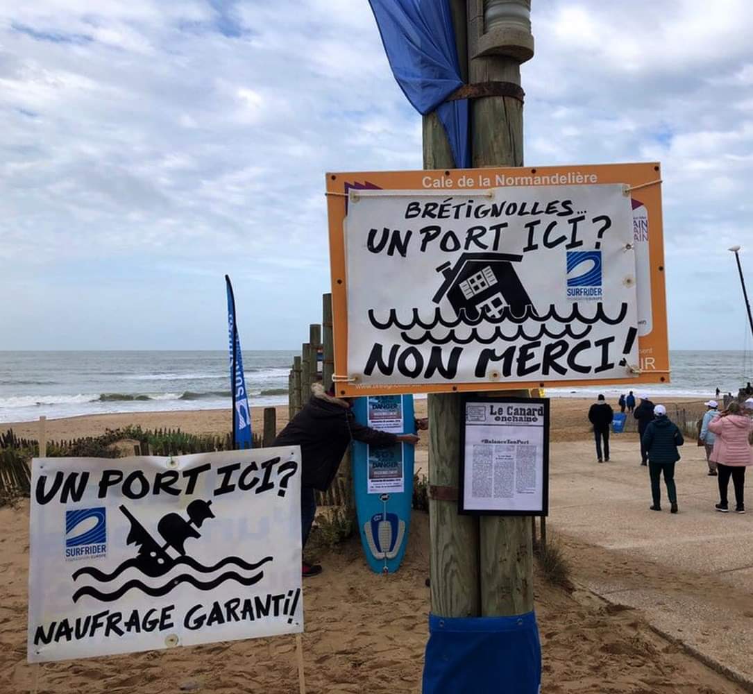 Un projet pour construire une nouvelle «marina» est lancé depuis quelques semaines. 43 millions d’euros débloqués et des bulldozers qui éventrent la dune pour créer un port artificiel. Cela devrait représenter 9.500 m2 de sable retiré, 10 hectares de terres agricoles détruites, 400.000 m3 de réserve d’eau brute vidés par l’entreprise Veolia. Absurde, coûteux et anachronique. Le projet couperait la plage et la petite ville en deux.