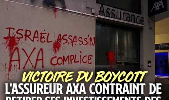 «Le géant de l’assurance AXA s’est désinvesti de toutes les banques israéliennes finançant les crimes de guerre contre les Palestiniens», c’est ce que dit un rapport de l’ONG Ekō paru le 21 août 2024.