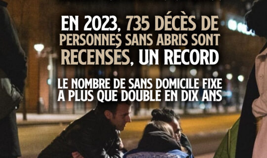 En juillet 2017, face au nombre de sans abris, le Président nouvellement élu Emmanuel Macron déclarait qu’il ne voulait voir «plus personne dans les rues d’ici à la fin de l’année» et que sa première bataille … Lire la suite de Sans abris : hécatombe record et politiques criminelles