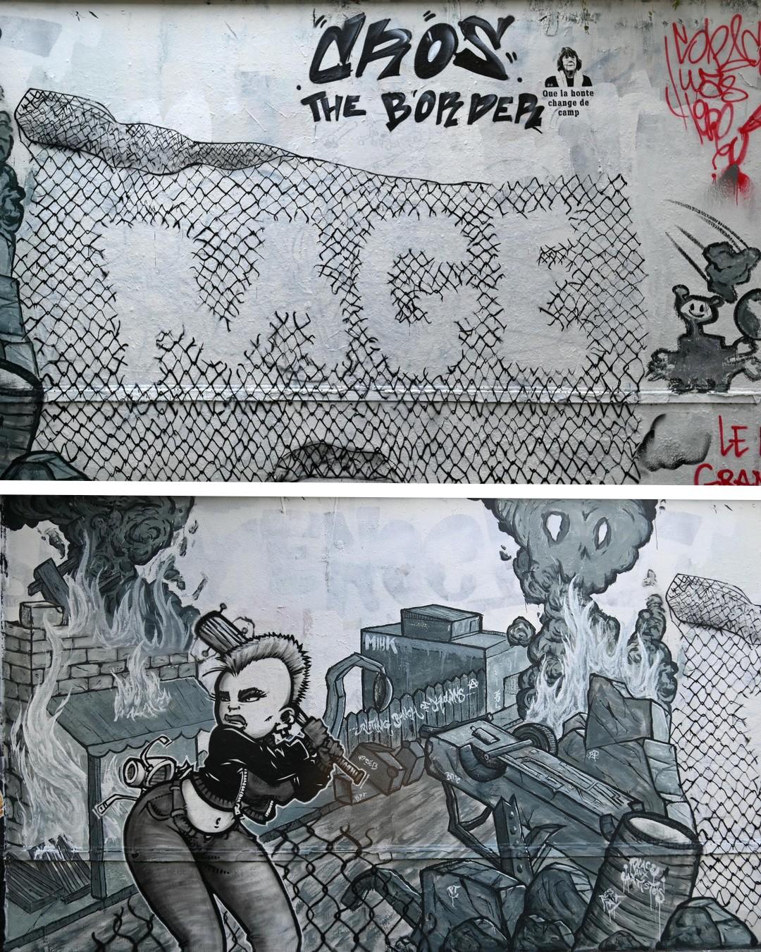 Il y a une semaine, le collectif artistique Black Lines a réalisé une nouvelle fresque sur le thème de résistances, mêlant dans ses œuvres en noir et blanc le soutien à la Palestine et la nécessaire révolte en France.