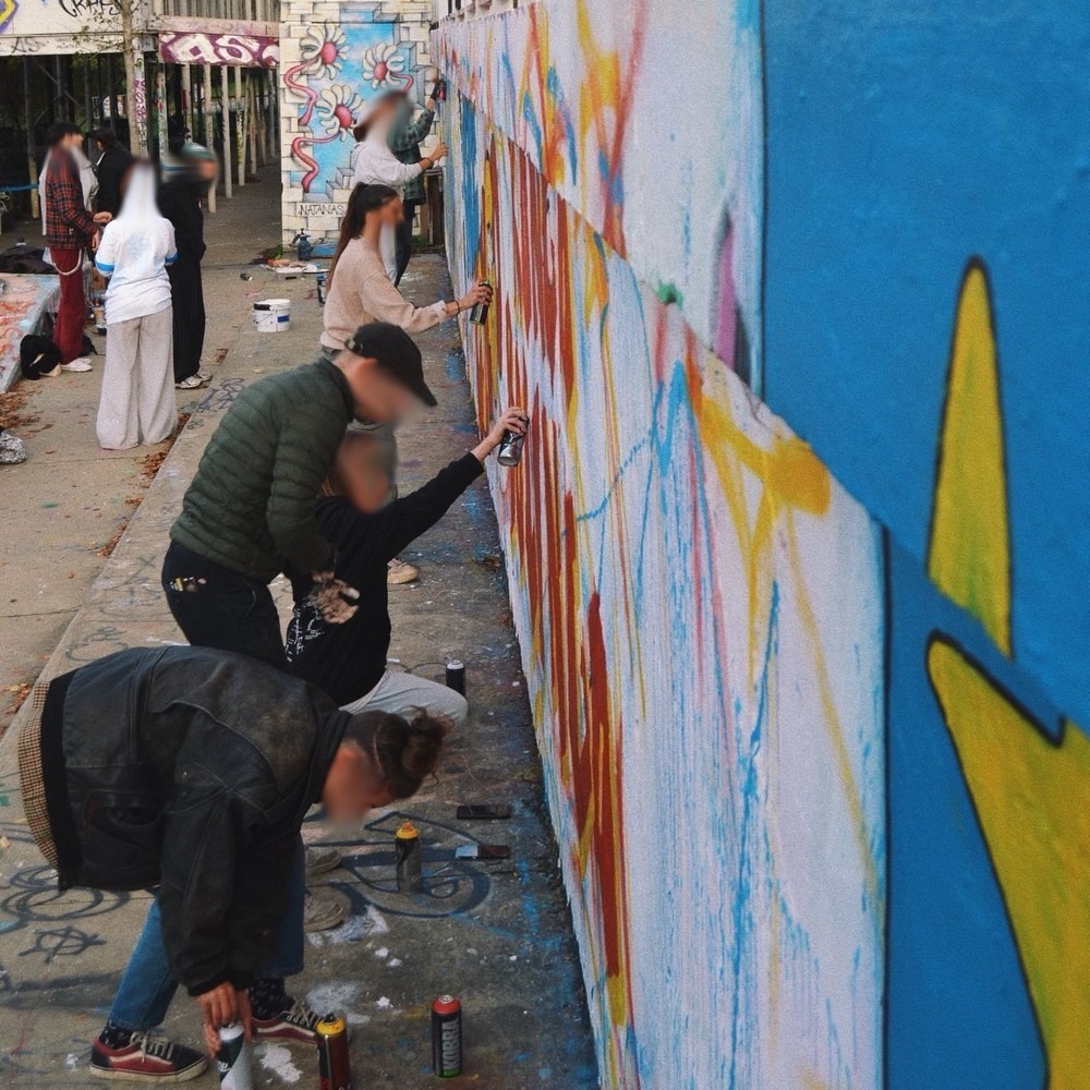 Pour réaliser cette grande fresque, nous avons pu compter sur la participation d’une trentaine de personnes au cours de la journée. De tous les âges et de tous les niveaux, c’est dans une ambiance bon enfant que tout le monde a pu transmettre, apprendre ou s’amuser. Visible depuis un pont avec un trafic important, nous espérons qu’elle interpellera les Nantais·es et les poussera à se renseigner sur la situation dramatique de la RDC.