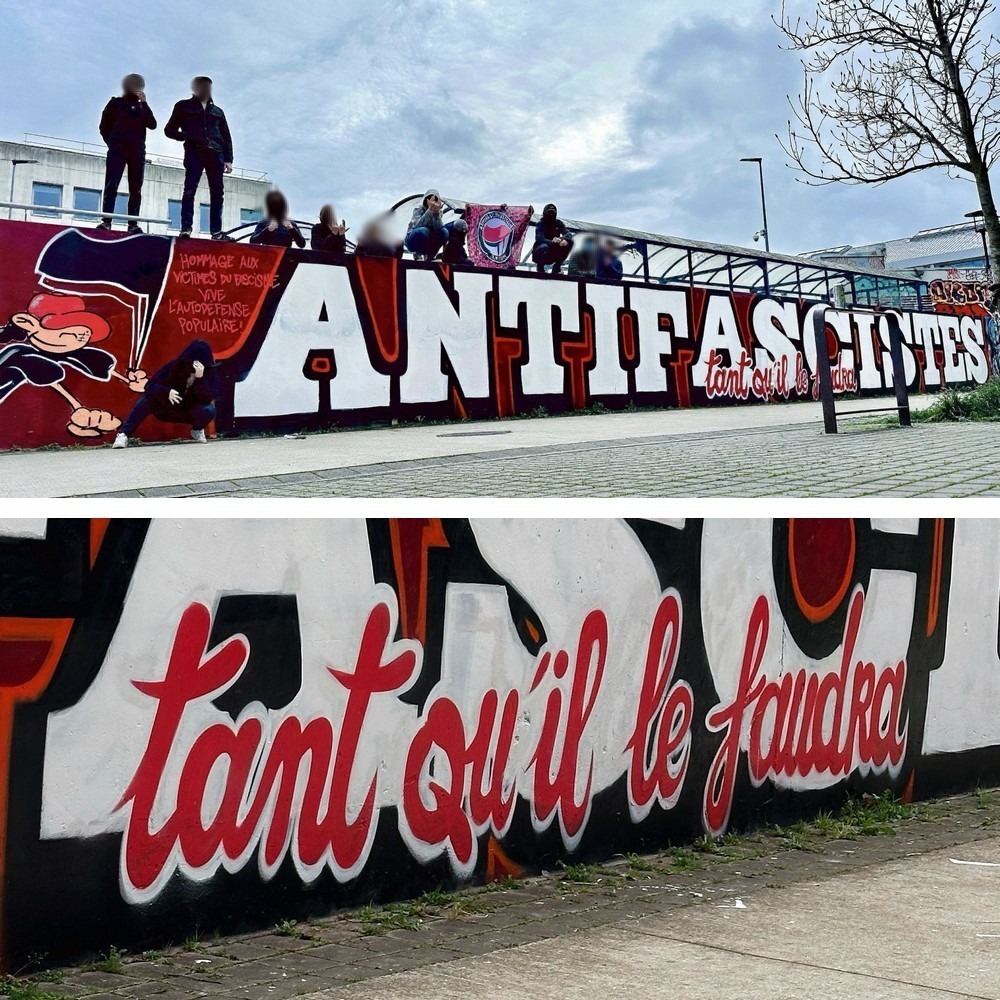 Une nouvelle fresque aperçue dans les rues de Nantes, ce dimanche 22 février proclame : «Antifascistes tant qu’il le faudra».
