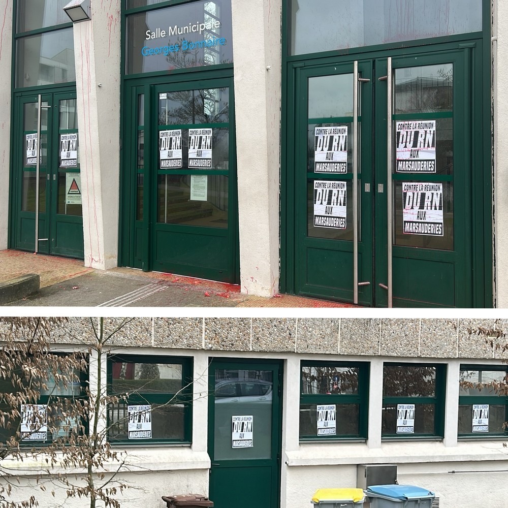 Alors hier soir c’est au prix de quelques dégradations que je souhaite imposer aux élus la question de l’annulation de cette réunion de racistes en plein cœur d’un quartier populaire et multiculturel. Je sais que les responsables de la salle sont bien conscients du poids de leur décision, puisqu’ils ont mis en place toute la semaine des mesures de sécurité autour de la salle pour faciliter la tenue de cette réunion de la honte.