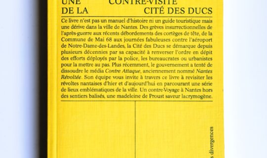 Ce n’est pas un manuel d’histoire ni un guide touristique mais une dérive dans la ville de Nantes. Des grèves insurrectionnelles d’après-guerre aux récents débordements des cortèges de tête, de la Commune de Mai 68 aux journées fabuleuses contre l’aéroport de Notre-Dame-des-Landes, la Cité des Ducs se démarque par sa capacité à renverser l’ordre. Plus récemment, le gouvernement a tenté de dissoudre notre média, Contre Attaque, anciennement nommé Nantes Révoltée. Nous vous invitons dans ces pages à revisiter les révoltes nantaises en parcourant une série de lieux emblématiques de la ville. Un «contre-voyage à Nantes» hors des sentiers balisés, une madeleine de Proust saveur lacrymogène.